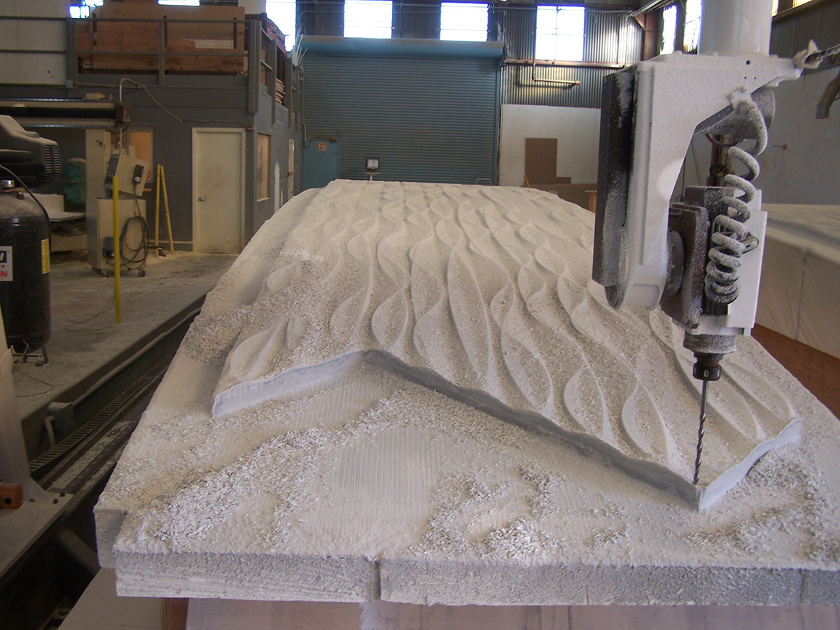 Bing Concert Hall Cloud panle mold being cut on CNC router