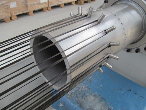Carbon fiber is wrapped around [ins on flanges at either end of the pipe-length