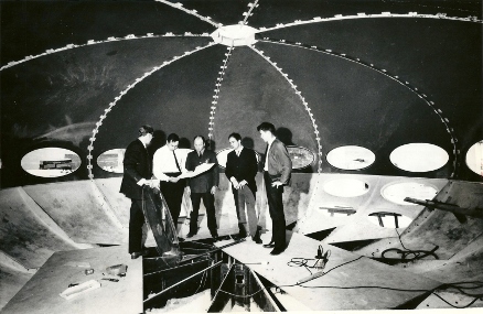 The first International Plastic House Exhibition in Lüdenscheid, West Germany, 1971, included “Orion” (in front), “Futuro” (left) “Bio-Dome” behind it, and “Rondo” behind “Orion.”