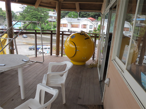 Noah escape pod on the porch, ready for use.