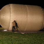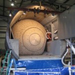 The structure of this highly stressed inflatable consists of macro-woven webbing and rope assemblies, a secondary structural layer, and an underlying inflation retention layer. Structural load bearing members are fabricated from Vectran™ fibers, which provide excellent strength and flex fold characteristics, allowing small packing volumes to be achieved. In this application, the high ratio of strength-to-size – seen in many fiber-reinforced composites – is put in service of being able to fold down very small when uninflated.