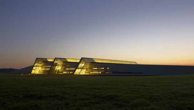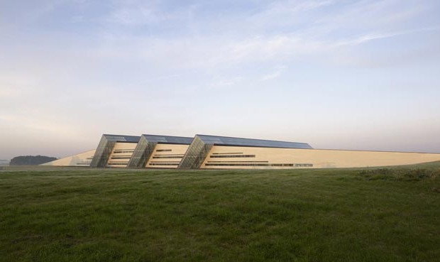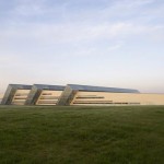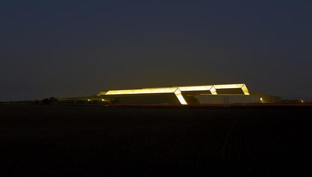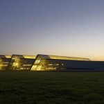 This FRP product factory in Middlefart, Denmark is clad with the company’s own products, some of which were designed specifically for this application. The facade is a system of overlapping FRP planks, the overlapping joints ensure the envelope remains waterproof. Window frames are also FRP, in this case extreamely thin pultrusions. Both frames and planks have a clear resin overcoat, allowing the fibers to show through and add depth. Designed by KHR Architects. More details on this project, including a great section of the facade can be found in the book Construction Manual for Polymers and Membranes, published by ITKE (more on them later) and can be purchased here.