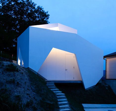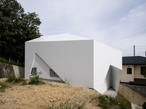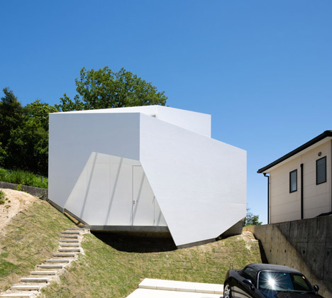 Continuing in our series on residential applications of composites is Wear House, by AUAU in Seto Japan. What would otherwise be a fairly typical, rectilinear design, the house has an exterior “wrap”, composed of FRP and plaster. The folds distort the otherwise boxlike configuration of the house, creating a truly unique sillouhette. The wrap acts as thermal barrier, wind break, and shading, faceting to suite the specific conditions of each elevation.