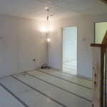 The design of the system features a foundation of FRP tubes driven into the ground as piles. Says Singleton, “Smaller tubes are grouted into the tops to support a FRP ground beam structure that is anchored down with threaded FRP rods, also grouted into the piles. FRP floor cassettes and two storey wall panels are connected to the ground beam and each other to make a portal frame structure. The builders say the floors are more rigid than concrete beam and block (which is good) and this type of foundation also resists flooding, which seems to happen more frequently these days. FRP dowels were used instead of nuts and bolts (which don’t work so well in FRP because it isn’t malleable), so the whole structure is built without steel or concrete. We also used cork cores in the outer wall panels (surprisingly good thermal resistance) which are bonded to studs to make a thermally/structurally efficient wall.