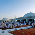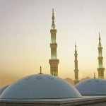 The Prophet’s Holy Mosque in Medina, Saudi Arabia, is one of the largest buildings in the world. It is the site of the original mosque built by the Prophet Mohammed in 622, originally a 30m x 35m open air building with a raised platform for the reading of the Qu’ran. The building was doubled in size within seven years, and has been enlarged numerous times since to accommodate the vast numbers of the faithful who come there to pray.