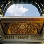 The richly decorated interior domes are fabricated in maple wood veneer and western red cedar.
