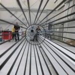 The artist who conceived the work, Rita McBride, formerly from New York and now a professor of sculpture at the Düsseldorf (Germany) Academy of Arts, was one of eight artists invited in 2002 to submit proposals for an Effnerplatz sculpture. McBride’s winning entry was conceived as a carbon-fiber work from the beginning, inspired by the recent examples of the material being used in bike design. She originally imagined telescoping carbon tubes. The ability of CGB to produce single long tubes made the telescoping idea unnecessary.