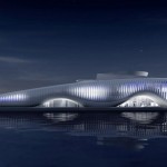 We experience the Ocean mainly in two ways, as an endless surface and in an immersed perspective as depth. This plain/profound duality of the Ocean motivates the building’s spatial and organizational concept. Continuous surfaces twist from vertical to horizontal orientation and define all significant interior spaces. The vertical cones invite the visitor to immerse into the Thematic Exhibition. They evolve into horizontal levels that cover the foyer and become a flexible stage for the Best Practice Area.