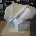 Scale models to represent the possibilities for the series were constructed as part of the process before the final designs were selected. As with every project, cost was a consideration, and forms that proved too expensive to fabricate were eliminated. Once the final designs were selected a laser scan was made, converting the forms into 3D CAD files. These were then scaled up and used to construct CNC’d molds into which spun fiberglass, resin, and honeycomb core would be laid. Core thickness and lamination skin materials vary as needed on the various parts of the structures. A main focus during construction was on perfecting the joining techniques.