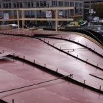 The complexity of the spout’s curvature required a solid form be manufactured. The form was coated with fiberglass to ensure the final finish of the concrete in this area matched the Finnform.