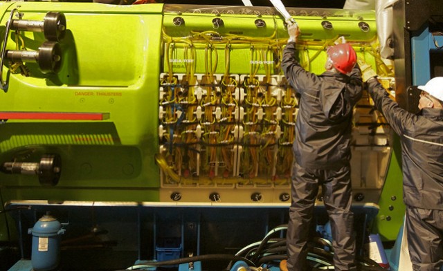 Incorporating new technologies, designs, and materials, the submersible DEEPSEA CHALLENGER is the product of years of dreaming, planning, building, and testing. From its one-of-a-kind vertical attitude to its innovative materials, including a highly sophisticated syntactic foam developed specifically to withstand the pressure at the bottom of the ocean, the craft is a showcase of engineering innovation. Above all, it is designed for safety—every critical function has multiple backup systems, from human life support to power, communications, and the mechanisms that return the sub to the surface of the ocean.