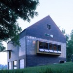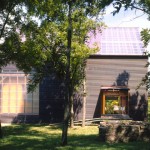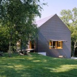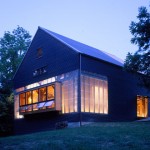 This barn, used as an event space for a designer and her firm, began with an existing old barn frame that was relocated and sheathed with very un barn-like materials: copper and fiberglass. Designed by the Kansas City firm El Dorado Inc., here is what they say about the project: