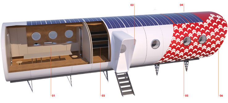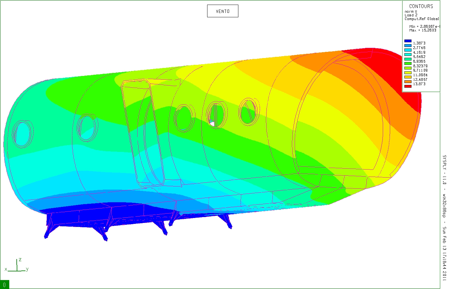 The engineering was developed on a complete Finite Element Analysis model applying the worst load cases like wind at 200 km/h eight meter snow and maximum furniture and occupants weight.