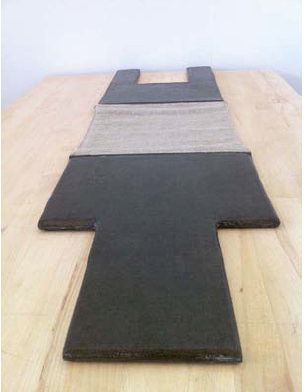 This stool, designed by CCA graduate students Sam Slater (Architecture) and Miwa Ikemiya (Design), is a hemp-fiber composite prototype that maximizes the material properties of both treated and untreated fabric. A continuous sheet of hemp fabric is selectively treated with bio-resin in a single lay-up to capitalize on both compressive and tensile forces. A bio-resin impregnated composite provides structure in the legs, but this treatment is not applied to the seat area. This allows the material to perform structurally when needed and in tension when needed. A foam core with embedded wood stringers provides additional strength and minimizes weight. Additionally, the material choices have a deliberately low environmental impact – bio-derived epoxy systems, hemp and sustainably harvested wood. Because of its collapsible and lightweight design, this stool can be used in any situation where portable temporary seating is needed (camping, picnicking, outdoor concerts, etc). To use, simply slot the legs into one another and sit on the draped cloth area. The weight of the individual keeps the legs in place, with no additional moving parts or straps needed. Natural fiber composites combined with novel techniques of selective resin application allow this stool to be made out of a continuous piece of material from the legs through to the seat, in a way that is lightweight, durable, mobile, and strong enough to hold a person’s weight.